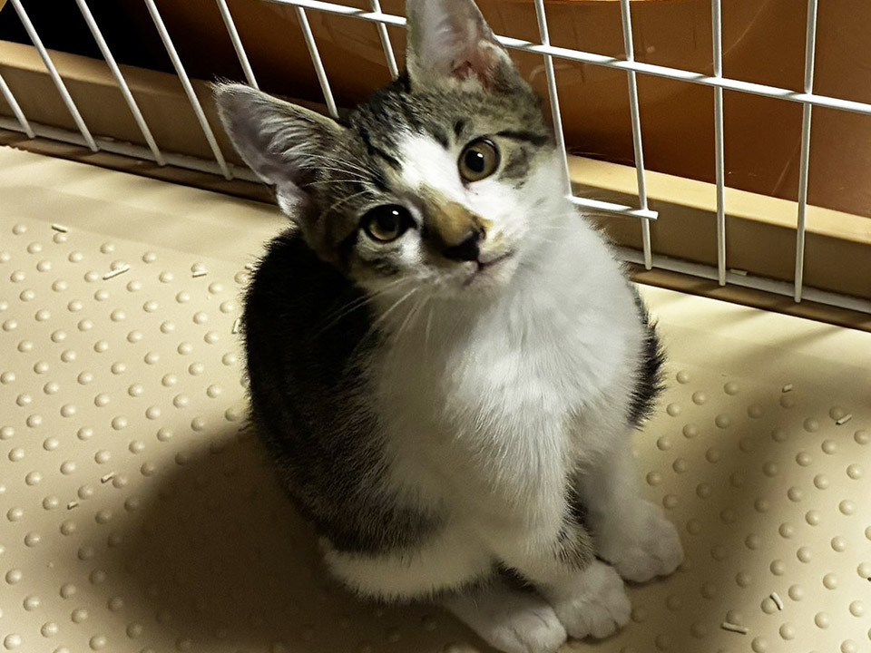 まだ小さいので他の猫と一緒に里親になって頂ける方か、先住猫さんがいらっしゃる方を希望しております。