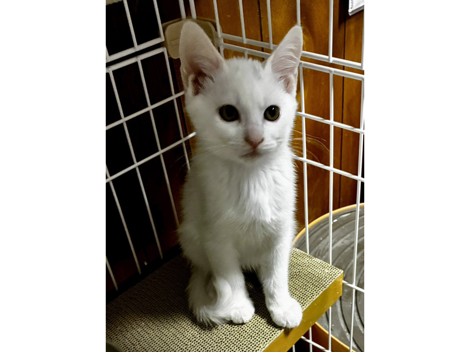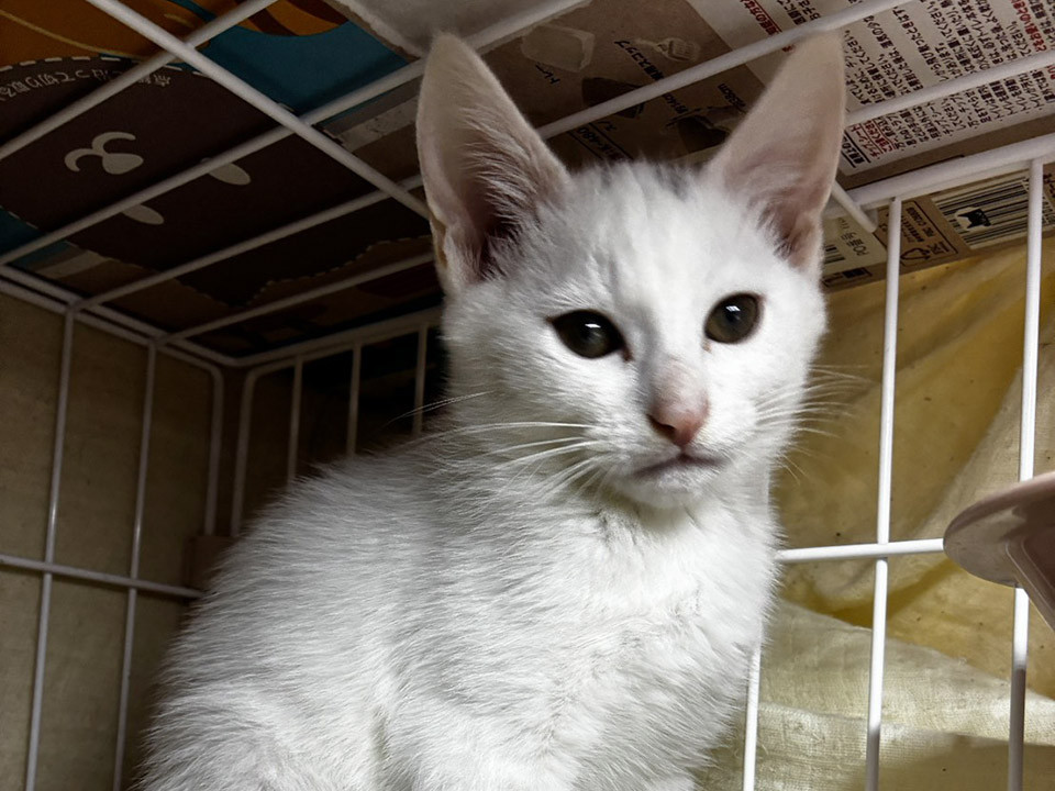 【性別:年齢:被毛】♂:4ヵ月:白(頭の黒薄)