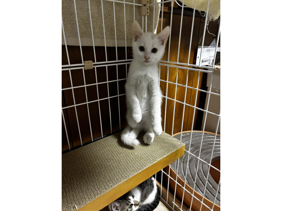 まだ小さいので他の猫と一緒に里親になって頂ける方か、先住猫さんがいらっしゃる方を希望しております。