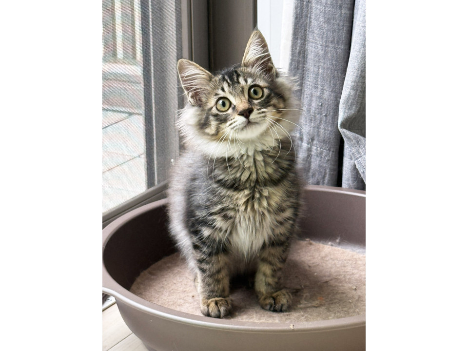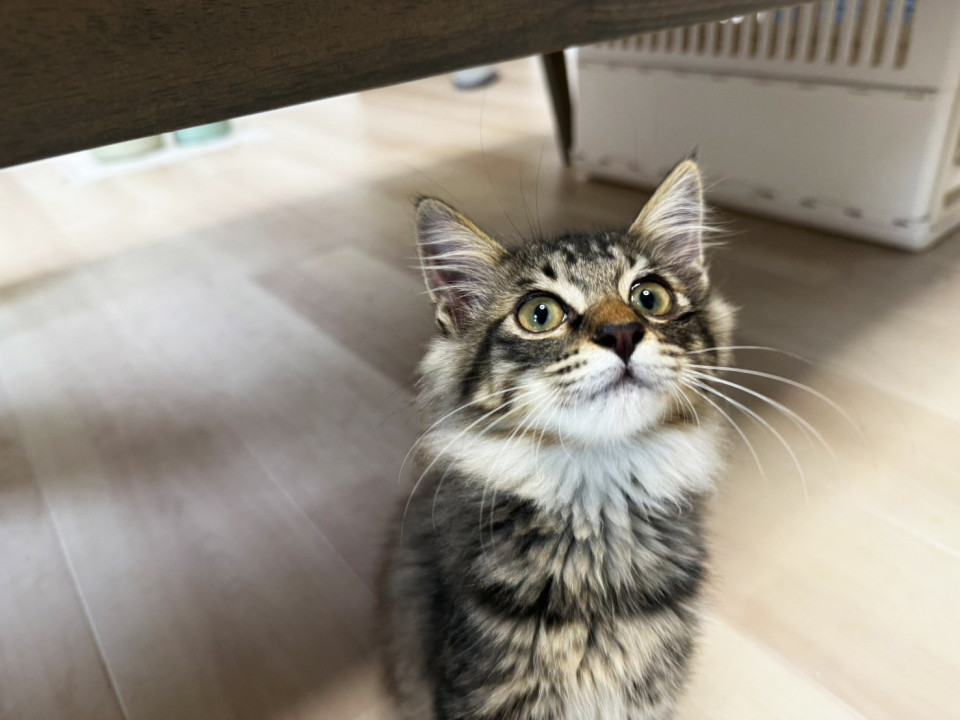 【性別:年齢:被毛】♂:4ヵ月:キジトラ長毛