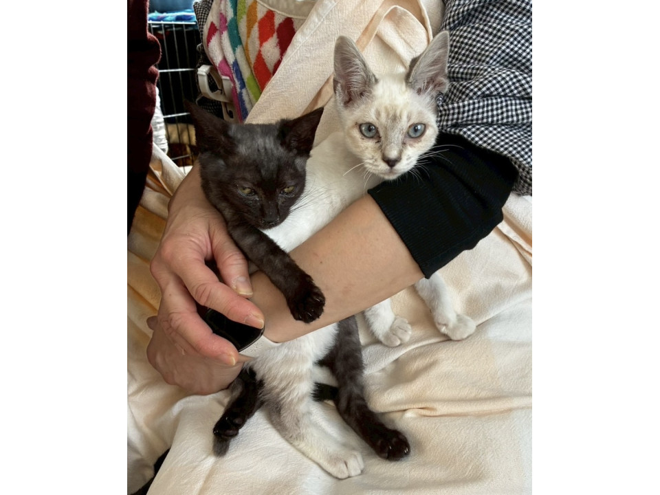 道路で動けずにひかれそうな仔猫がいると連絡もらい、夜中に探しに行きましたが見つからず早朝出直したところ、畜産農家の庭で、ネズミ避け目的で繁殖している子猫達がいました。