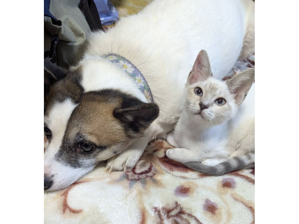 とても甘えん坊で場所みしり人見知りなく、猫とも犬とも仲良く出来ます。