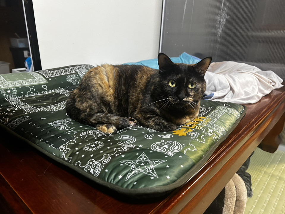 家の庭で子育てしているところを保護しました。仔猫たちは新しい里親さんのところへ行きまして、お母さん猫だけおります。