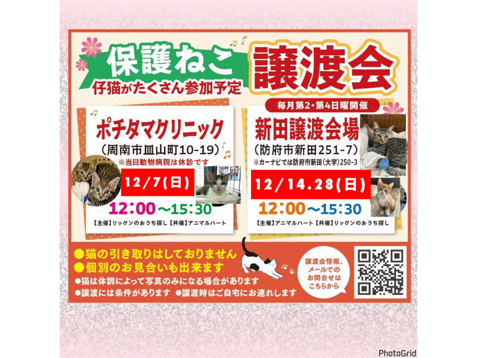 譲渡会に参加予定ですが、個別のお見合いにも対応します。
