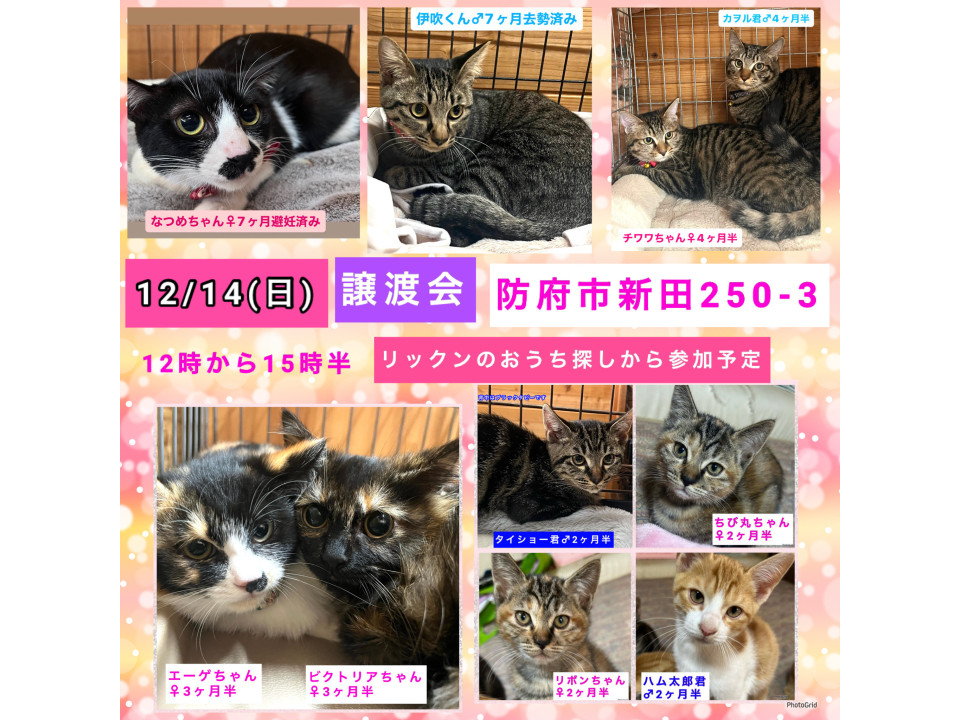 譲渡会参加予定ですが、個別のお見合いにも対応します。