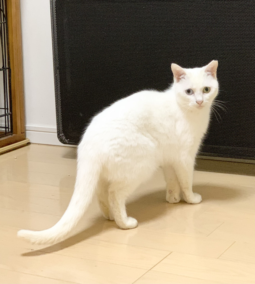 我が家の飼い猫(オス)がいじめるため家の中をフリーにできず、ずっと保護部屋での生活です。