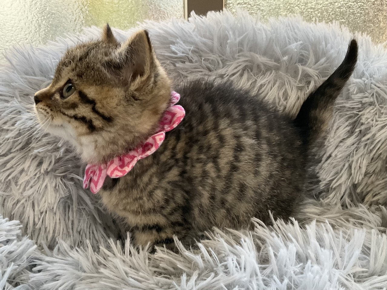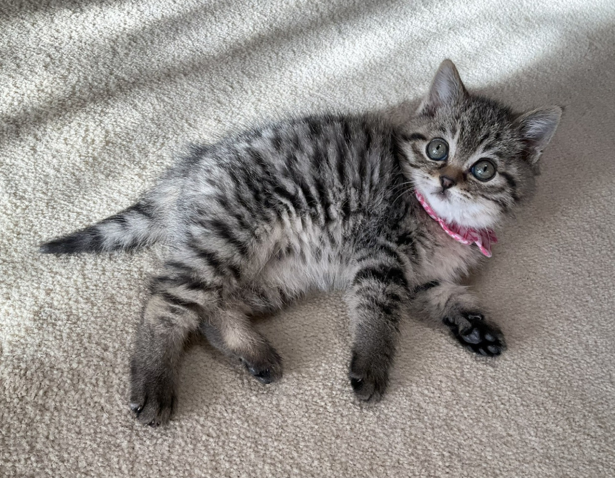 お顔のパーツがちんまり中心にまとまっていて、PAUL&JOE のキャラクター ヌネットを思わせる、愛らしいキジトラの女の子です。