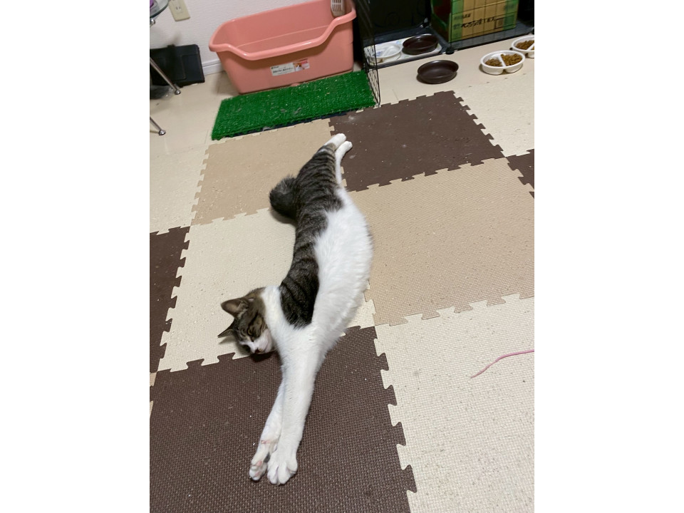 やんちゃな所もありますが、足にスリスリしてくるぐらい人懐っこいです。機嫌がいいと床でゴロンゴロンしています。