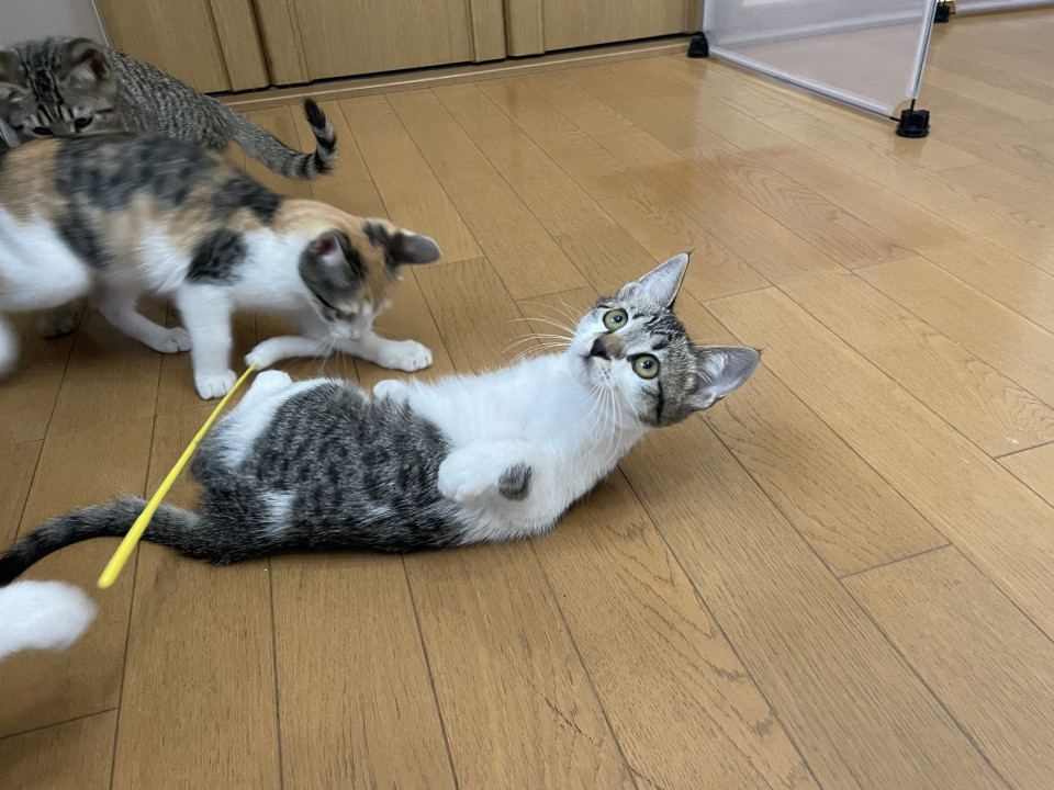高齢者のお宅の庭で過ごす猫が出産した猫たちです。母猫のTNRを(なかなか捕獲できず)している最中です。