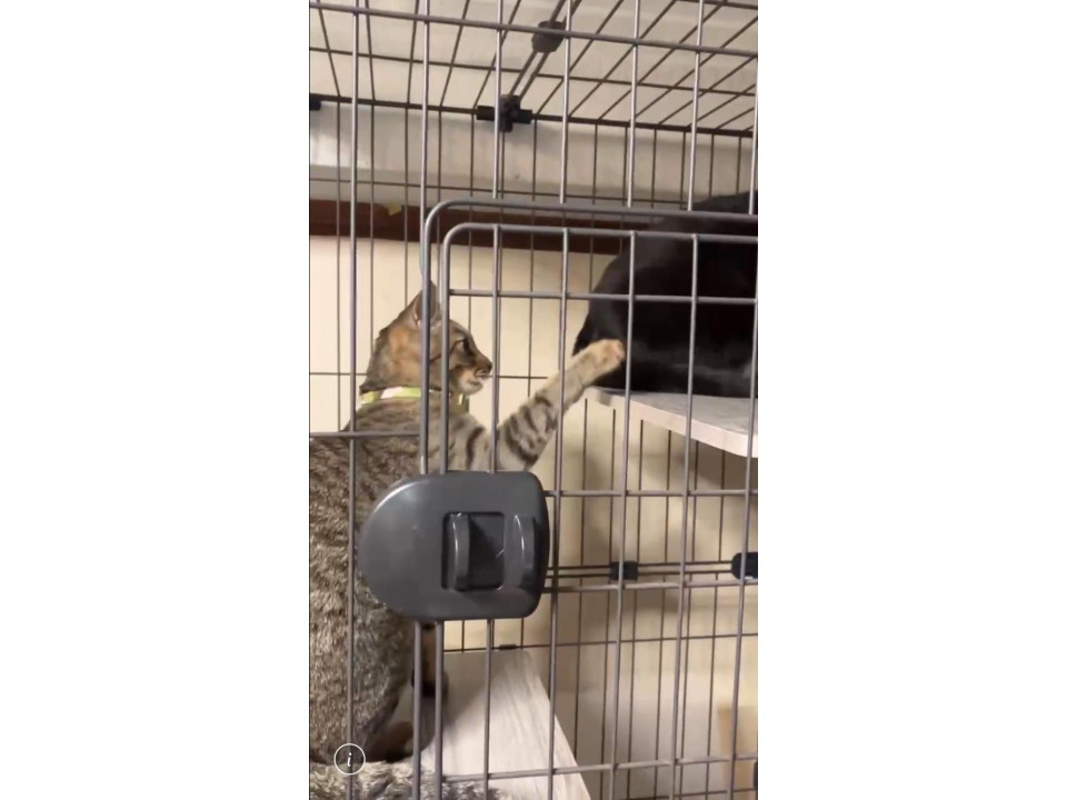 猫は大好きみたいで、小さい子とは遊んで、上の子たちにはソロっと近づくのが好きみたいです😊