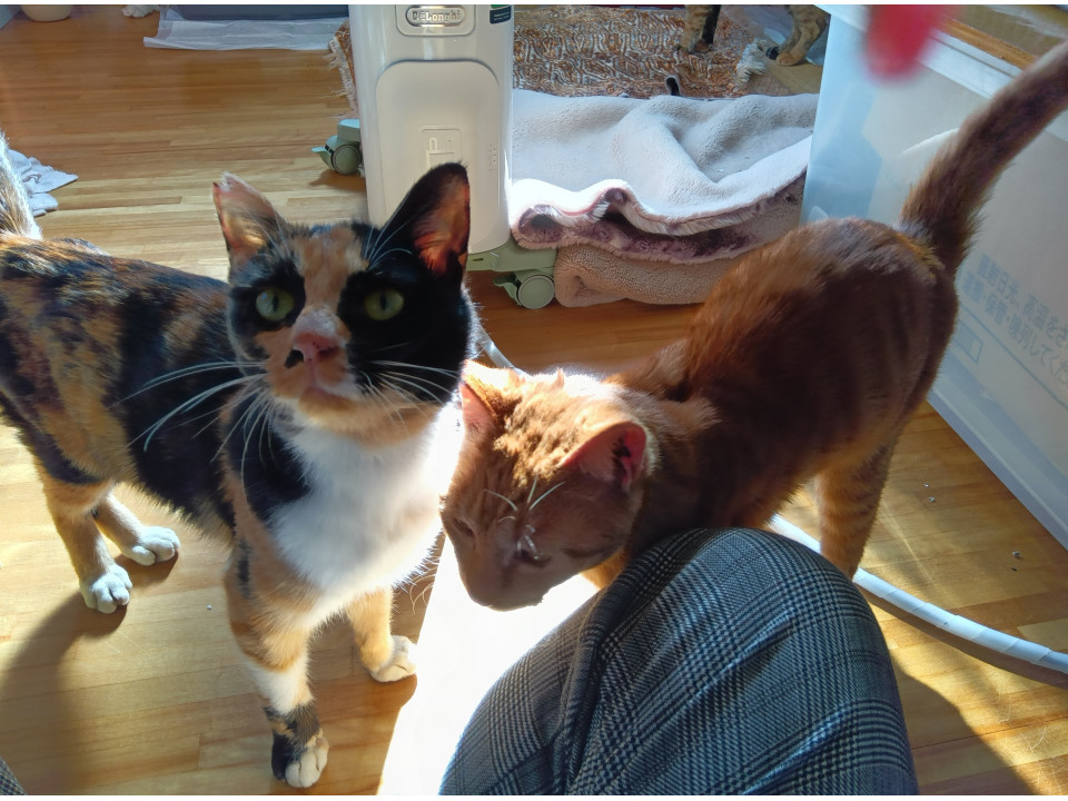 とても人馴れバッチリの食いしん坊お母さんという感じ。食べる時は、しっぽが爆発しています。いつも飢えていたんだと思います。