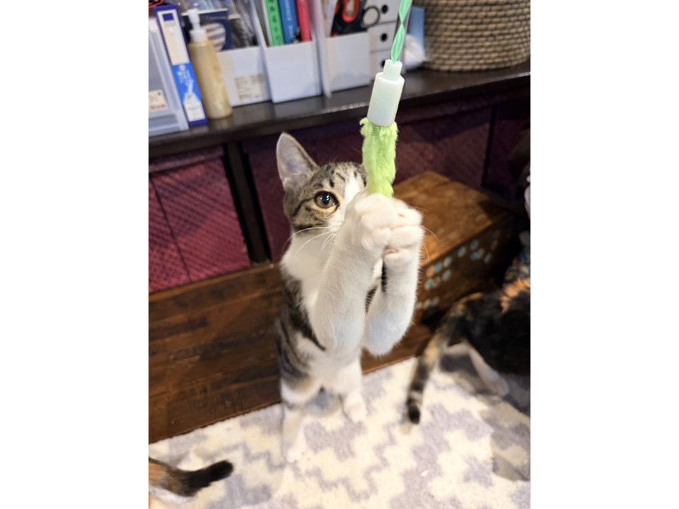 (猫は多頭飼いすると、一緒に遊んで成長し、どれくらいの強さなら噛んでいいのか、猫や人にどんなふうに接したらいいのかなど、さまざまなことを学びます。運動不足解消のためにも、同じ年くらいの猫を多頭飼いすると、一緒に遊ぶことができるのでいいですよ。思いっきり体を動かすと、ストレス解消にもなります。)