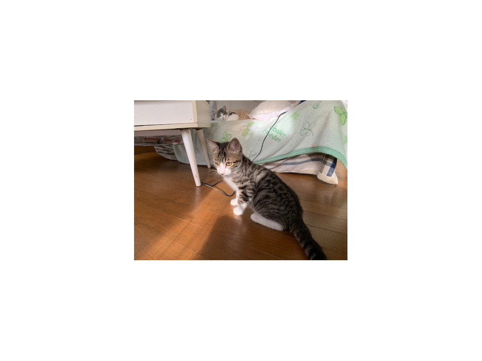 可愛いきじ白、山彦君です。手袋靴下とお鼻の微妙~な模様がチャームポイント。野良ちゃんでしたが十分人慣れしていて、抱っこもできます。子猫らしく活発で、他の猫ちゃんともすぐに仲良くなれます。