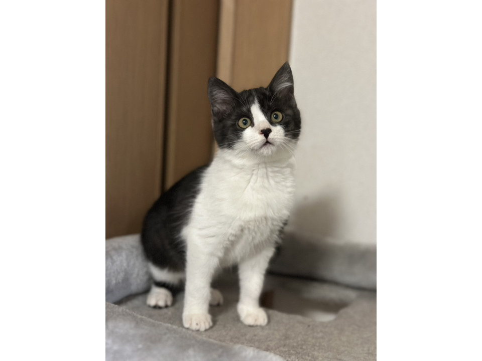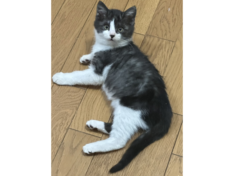 ふわふわの柔らかい毛並みのハチワレ男子です。