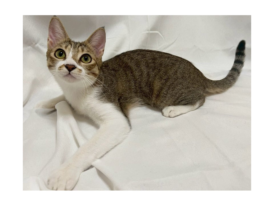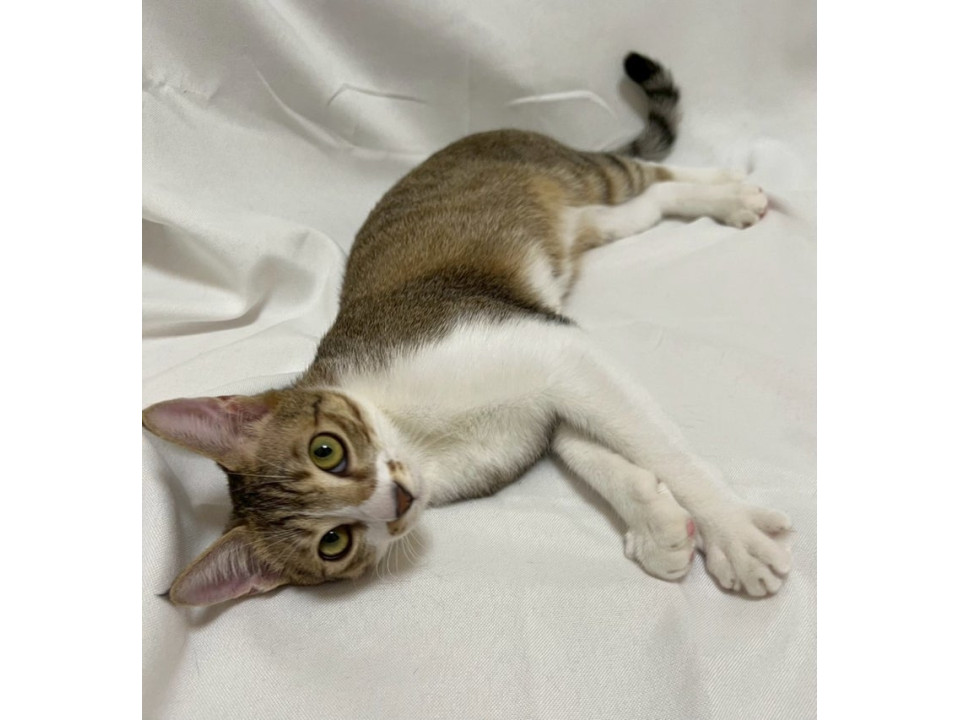 【性格】沖縄県中城からやってきたキジ白の子猫くんです。子猫と言っても生後6ヶ月なので、大きめの子猫です。