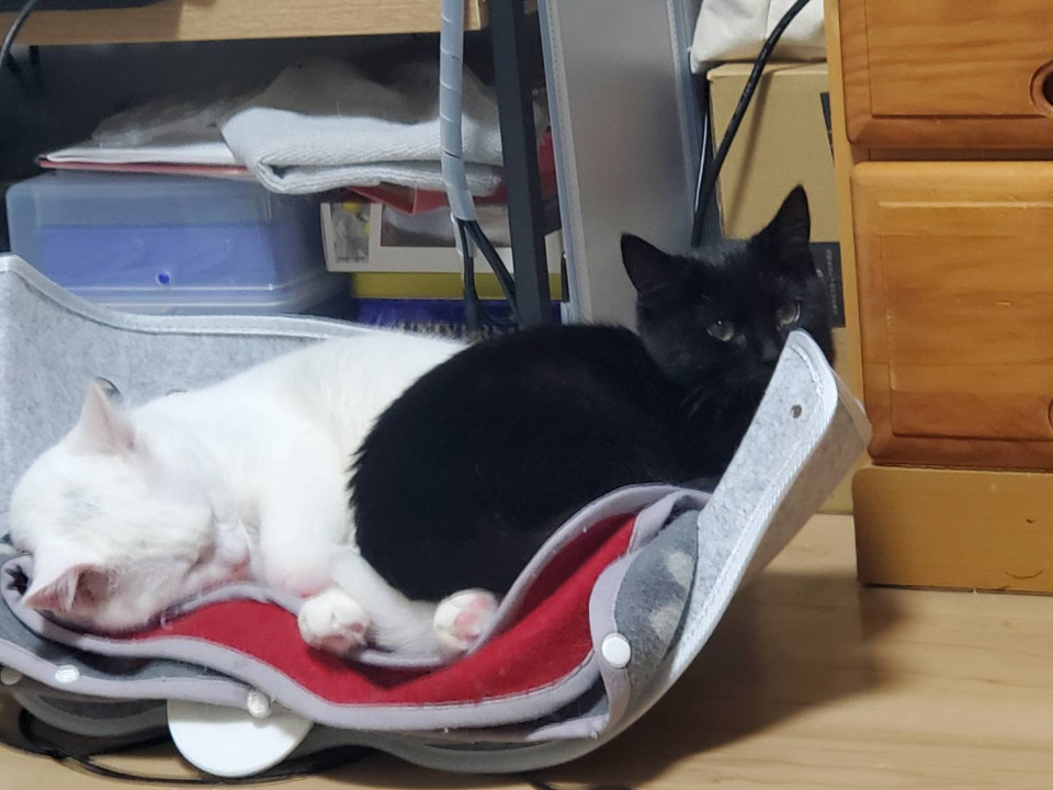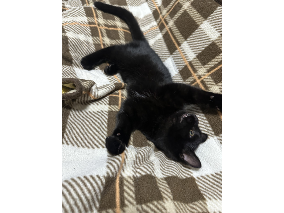 今はまだ保護してから2週間ですが、まだ人間より猫と遊んで、くっついていたい様子なので、先住猫がいるご家庭を希望します。