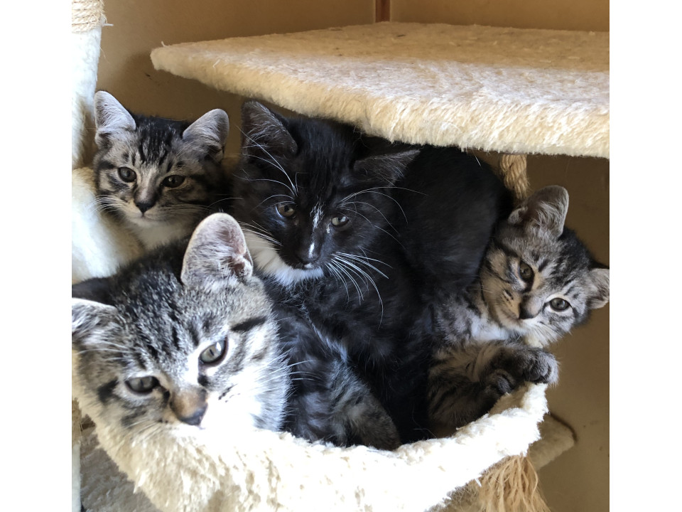 4匹ともママさん猫からおっぱいを飲んで、とてもすくすく育ってます。元気で食欲旺盛で、毎日運動会です!