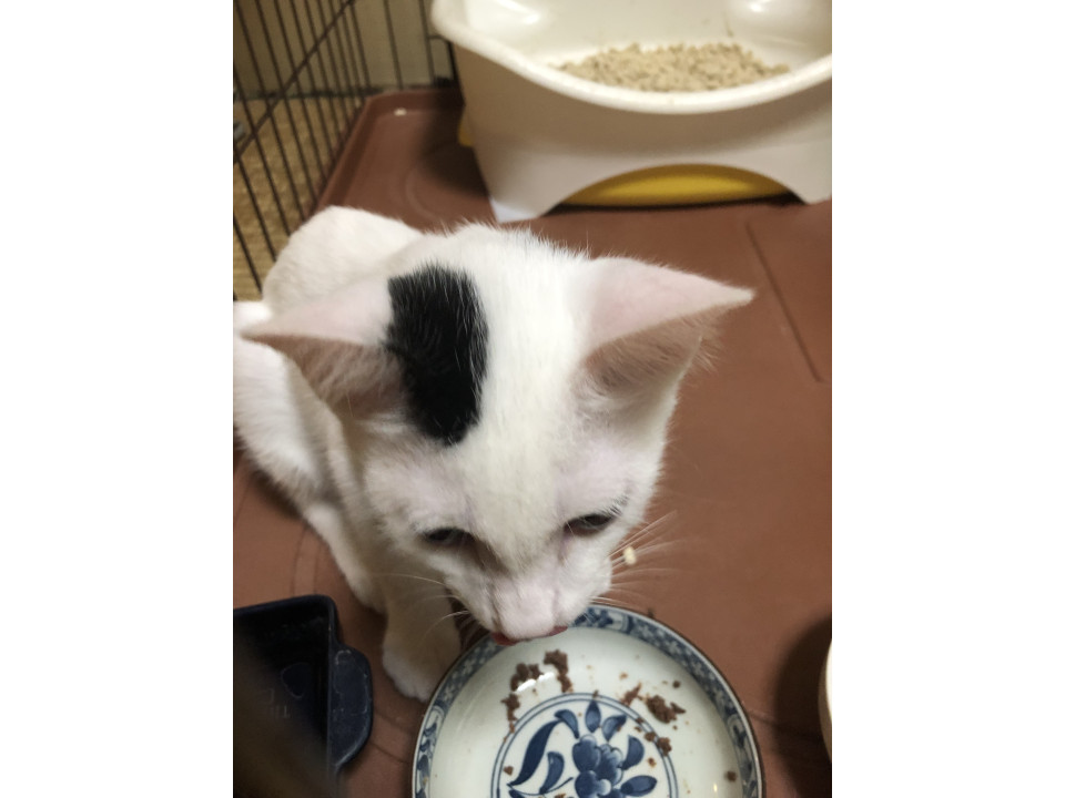 実家の近くのコンビニでうろうろしていて、何度か見かけるようになり、餌を与えていましたが、大通りに面していて、トラックなどが多いため、まだ小さく事故に合いそうだったので保護することにしました。