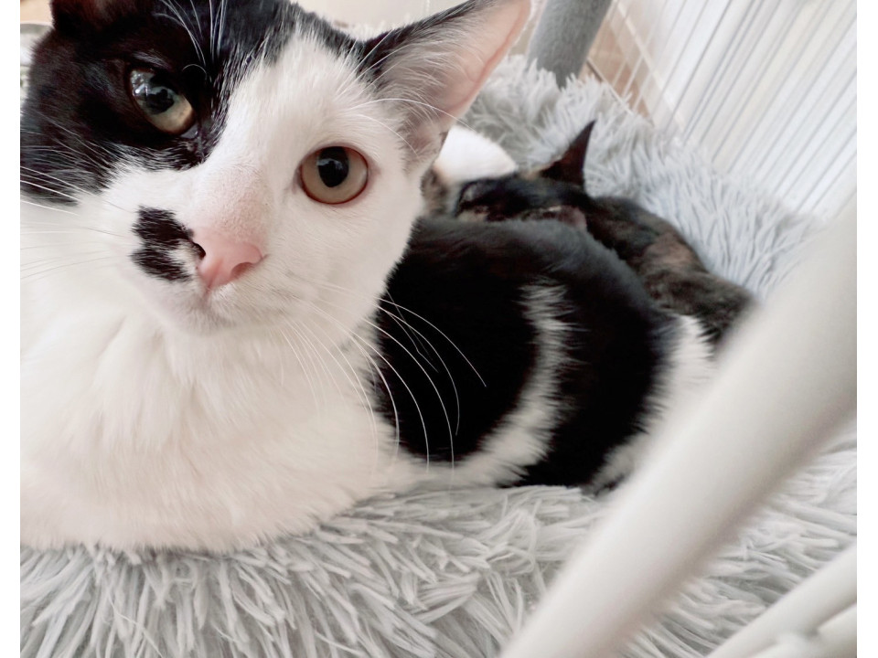 保護猫のいっくんもイサキくんの面倒をよく見てくれて、お兄ちゃん猫たちに可愛がられています