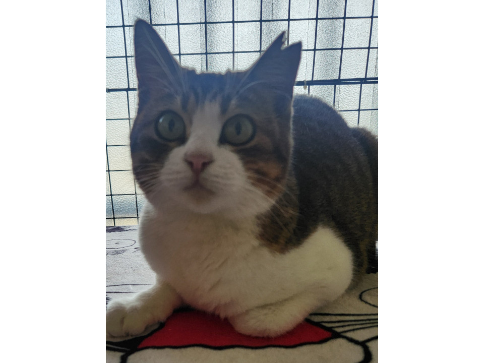 依頼者宅で餌をもらっていたので人馴れしています。粽ちゃんと同様とても温和で、餌やりさんにだっこしてもらってたこともあり甘えん坊のようです。人が近づくと小声で鳴きます。