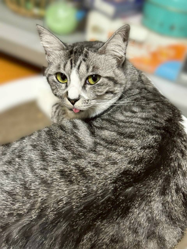 薄いグレーと黒の縞トラ柄がとても綺麗な美人な女の子です。