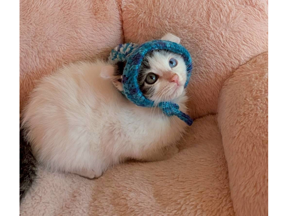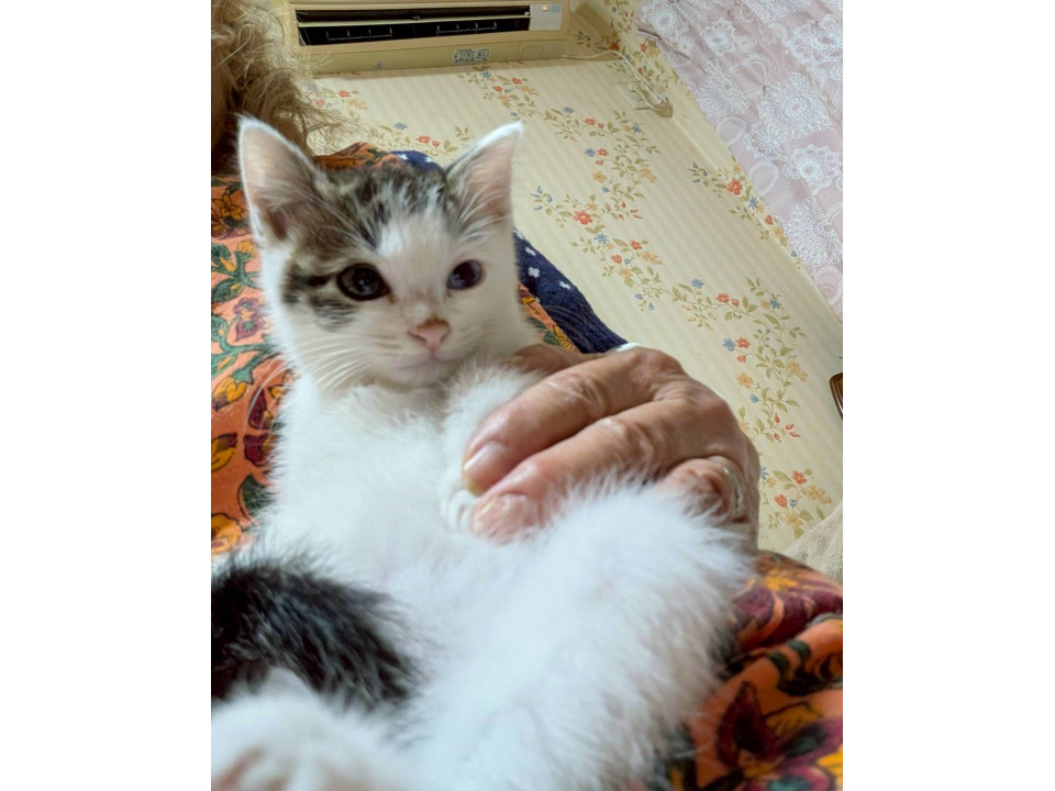 ・アピールポイント:オッドアイが綺麗なな男の子です。玩具に戯れたり、同じ場所で保護した「おもち」と仲良しで一緒に戯れあってます。まだ、少しビビリさんですが抱っこしてるとスヤスヤ眠ったり、チュールを喜んで食べてくれます。