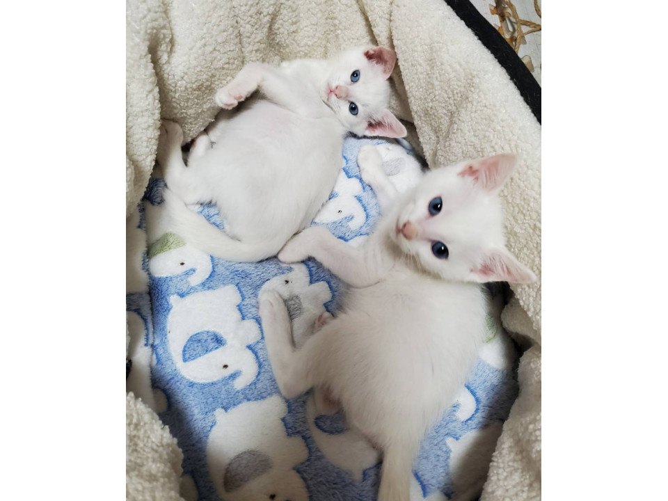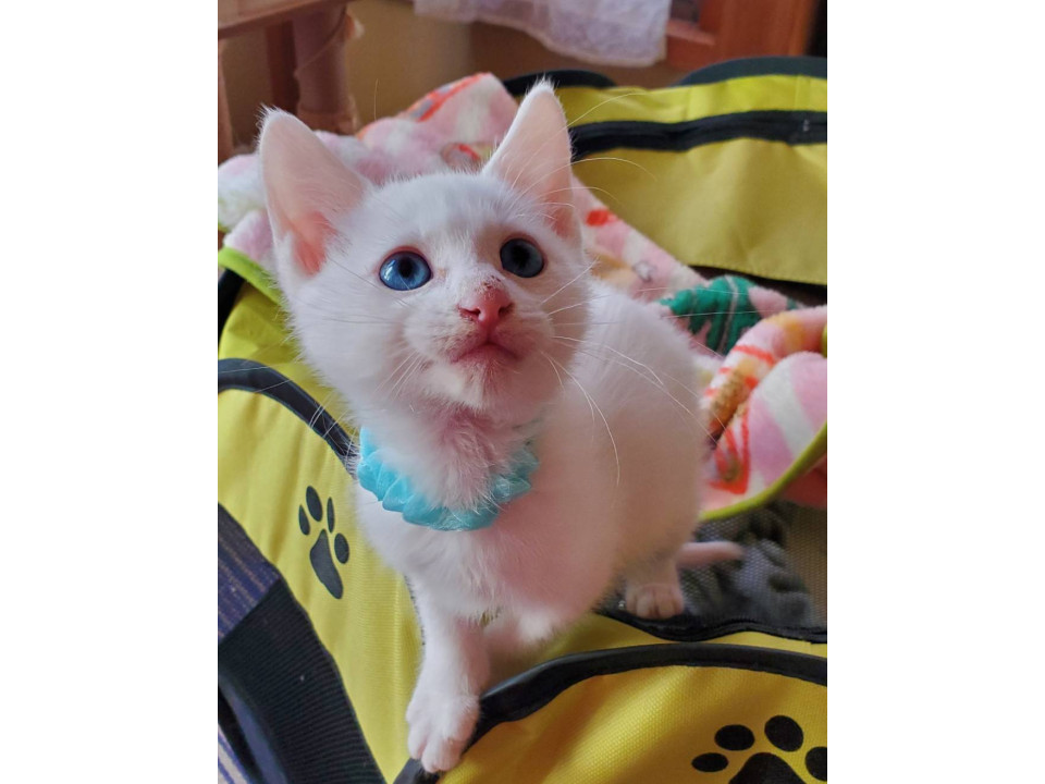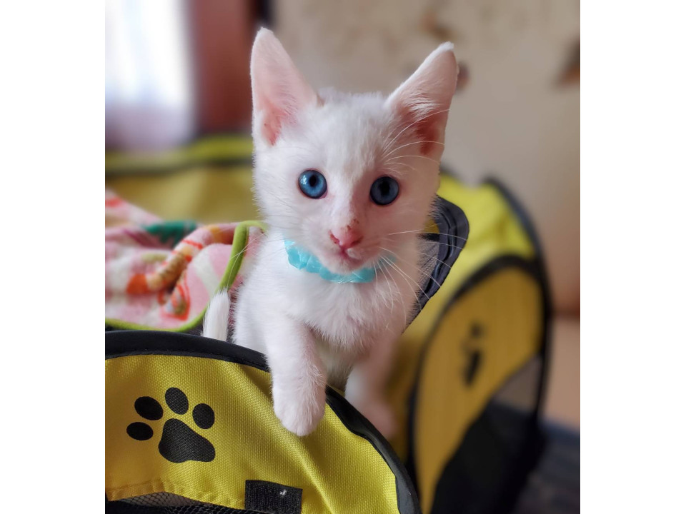 ○生後2ヶ月くらい(2025年12月時点)の全身真っ白青目の男の子です。