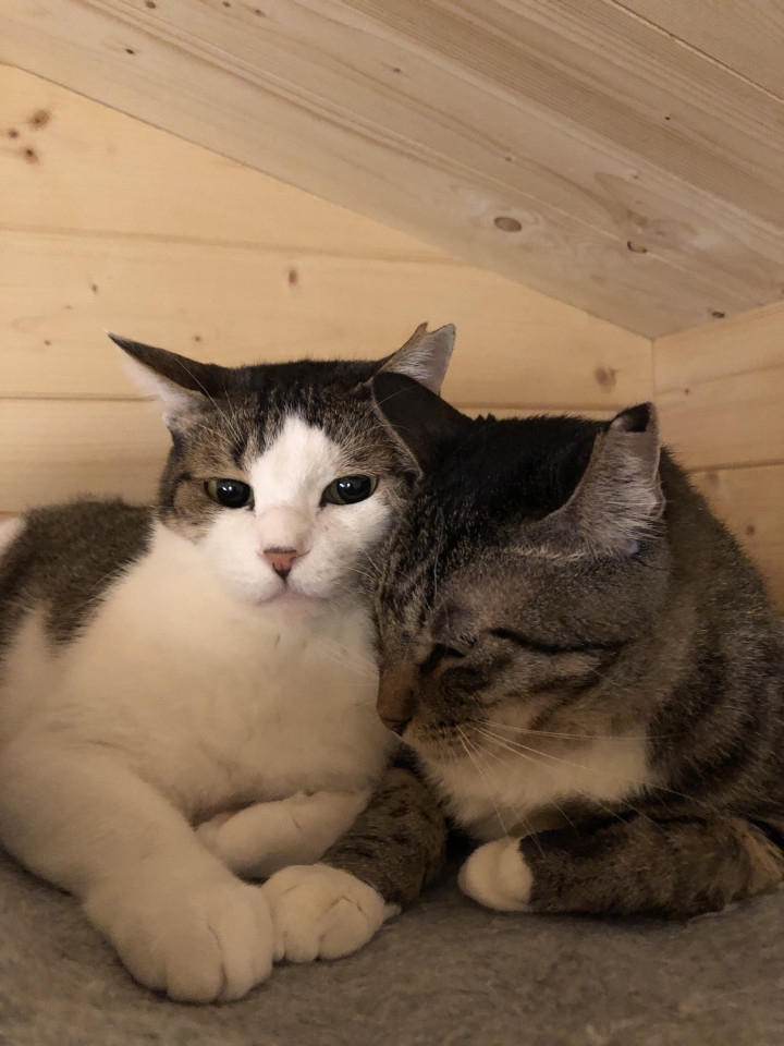 多頭飼育崩壊の現場からあんずと共にレスキューされましたが、この2匹はその現場では他の猫たちにいじめられていたので、ジーッと息を潜めて隠れて生きてきました。今は隠れる必要がなくなったので、ご飯もしっかり食べられて、ピカピカむちむちボディーの美猫さんになりました!ここに来て初めてオモチャで遊んだのかな、猫じゃらしなどオモチャで遊ぶのが大好きです!こちらから近付くとまだ少し戸惑って高いところやケージの中に逃げてしまいますが、そんな時もジッとこちらを見て、構って欲しくて鳴いて呼びます。撫でるとすぐにゴロゴロ、撫でる手を止めるとすぐにこちらを見て、止めないで!と訴えてくる甘えん坊さん♡すももにもっと寄り添ってあげられる時間があれば、もっともっと素直に甘えられる子になるはず。