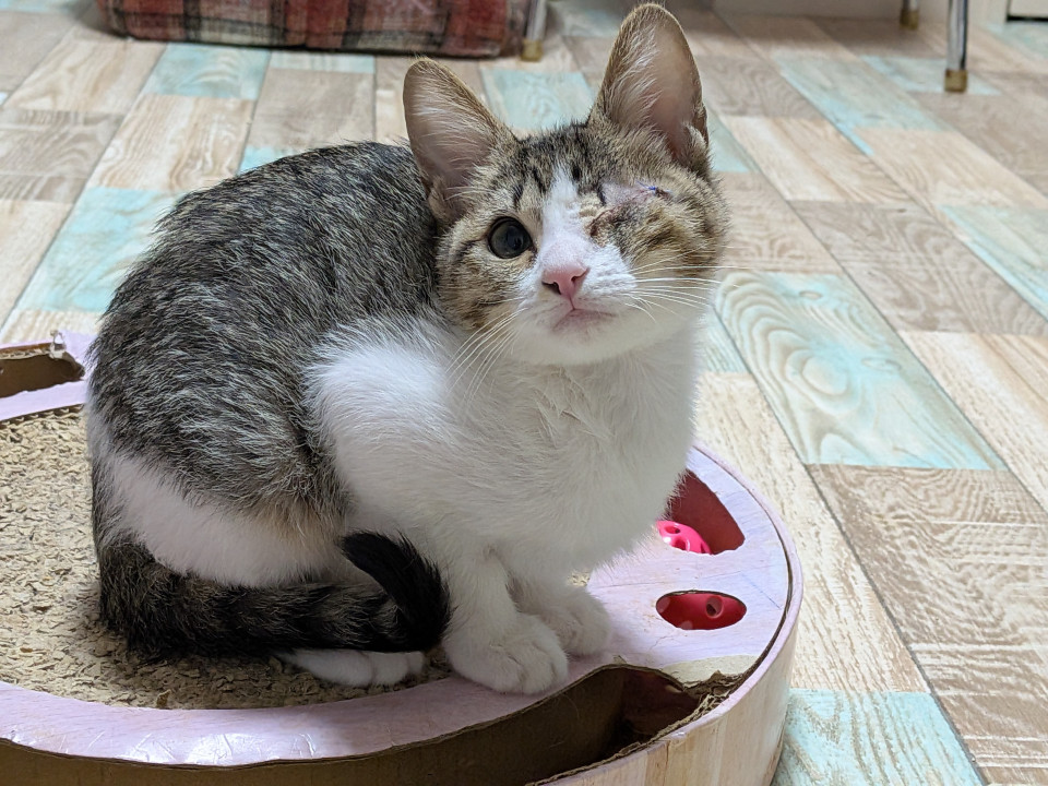 みむは保護したときに酷い風邪をひいていたために左目の状態が悪く治療をしていましたが緑内障になり12月4日左目の眼球摘出手術をしました