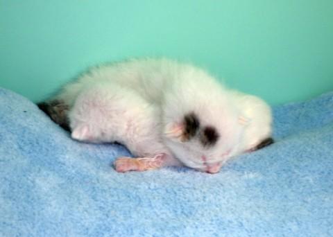 ブルーくん ♂ 白地にお顔にホクロ・わき腹に黒・尻尾に黒縞 真っ直ぐ