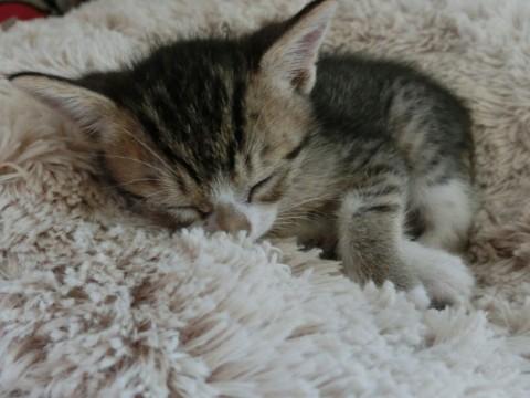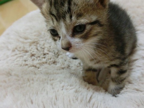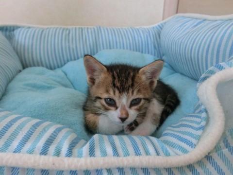 ,始めのころは、威嚇などの行為がありましたが、現在はなくなりました。クッションでスヤスヤと直ぐに寝てしまう大物です。食欲もあり、馴れたら凄く甘えん坊になりそうな感じの女の子です。