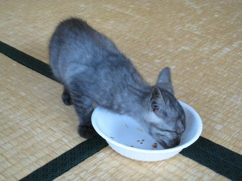 元気いっぱい。ご飯はネコ缶とカリカリと食べさせています。