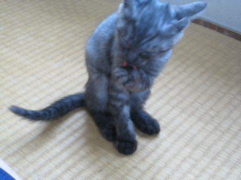 保護当初はガリガリで案の定前足を骨折していました。1週間後、病院受診後、自然治癒で今は、我が家の猫達の中でナンバー1の脚力を持っています。