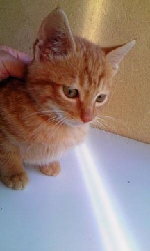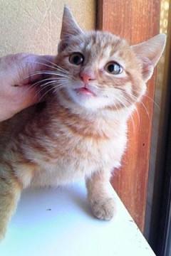 茶トラ(全身茶トラ模様、シッポは中位よりも長め)、白なし。