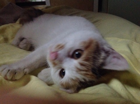 近所の方が川から救い上げて保護したのですが、長老の先住猫が神経質で体調を崩してしまったので、我が家で預かって里親さんを探す事になりました。