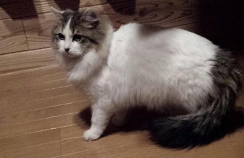 毛はミディアムロングです。