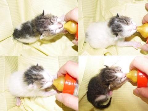 哺乳瓶でミルクを飲み順調に成長しております。とっても元気な子達