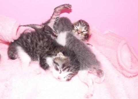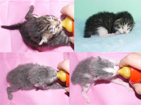 哺乳瓶でミルクを飲み順調に成長しております。とっても元気な子達