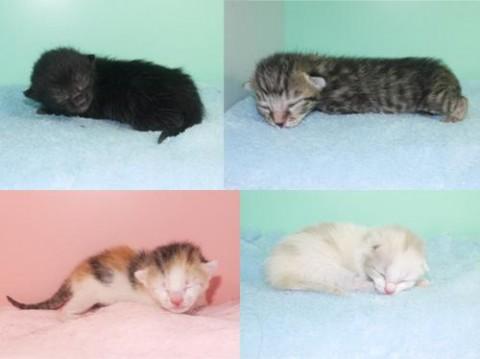 生後1ヶ月半位までは4時間おきの授乳(離乳食)・排泄介助・安静・保温のお世話が必要な子達です