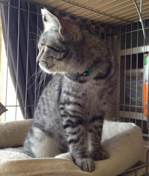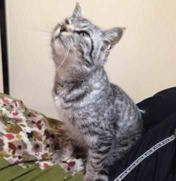 グレーのとら猫さん。グリーンアイ。長しっぽ。