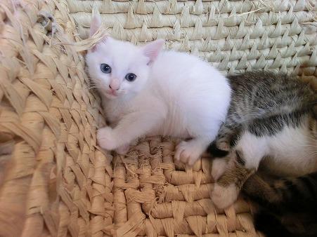 ブルーアイの白ネコの女の子です(頭に少しだけグレーがあります/ゴーストマーク?)