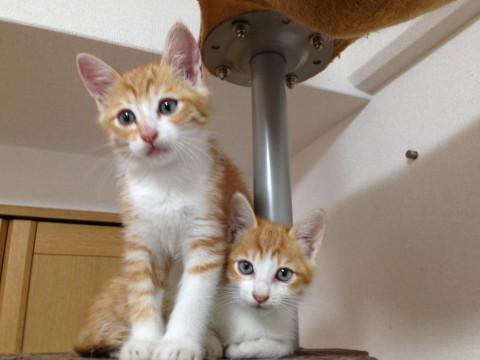 茶トラ×白色の仔猫の兄弟(妹)です。