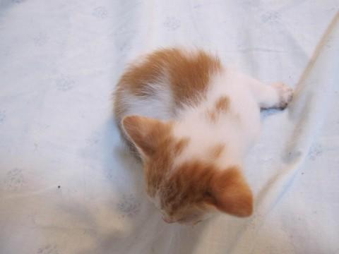 かわいい茶白の男の子こたけくん、茶白の割合が半々です。現在離乳食ですがドライもぼちぼち食べています。大変人なつこく夜は一緒に寝ています。他の猫ちゃんにもとてもフレンドリーです。