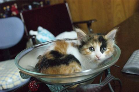 おっとりしていて、こちらをじっと見つめるのでつい撫でたり遊んであげたくなります。行動は大胆で高いところでも平気で上がっていきます。