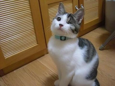 目が開いて間もなく、左目が緑内障であることが発覚し、なんとか目を残してあげたいと、3度も手術を試みましたが、残念ながら結果眼球摘出となりました。既に抜糸も済んでおり、今後目に関するケアは必要ありません。普段の生活は、特に普通のねこと変わらず、高いところにも飛び乗りますし、とても元気に駆け回っています。