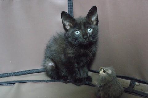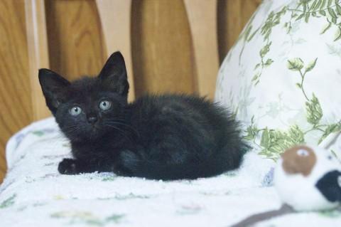 体重430g お耳が大きい黒の女の子です。好奇心が旺盛でカメラを向けるとレンズを覗き込みにきます。