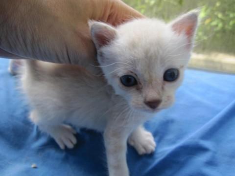 きれいなシャム系ミックスらもくんです。まだ性格はわかりませんが、ミルクから育てているので大変人なつこくなります。