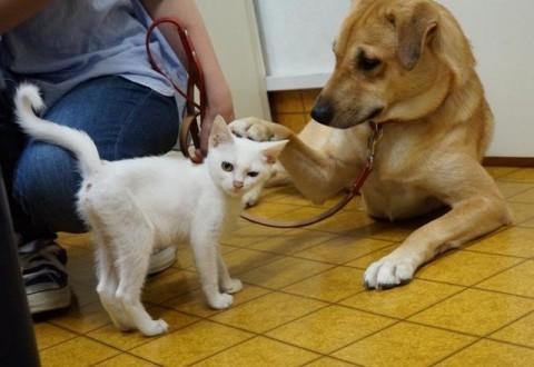 大型犬や小型犬でもフレンドリーに近づいていきます。保護して一ヶ月以上経ちますが、噛んだり引っ掻いたりした事は一度もありません。