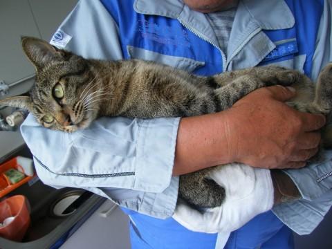 会社の敷地に突然あらわれ、1年くらい見守ってきましたが、とても人懐っこく、建屋に入りたがる為、保護。