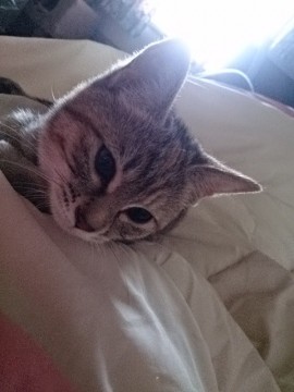 喉を鳴らしながらベッドにもぐりこんで来て一緒に寝ます。